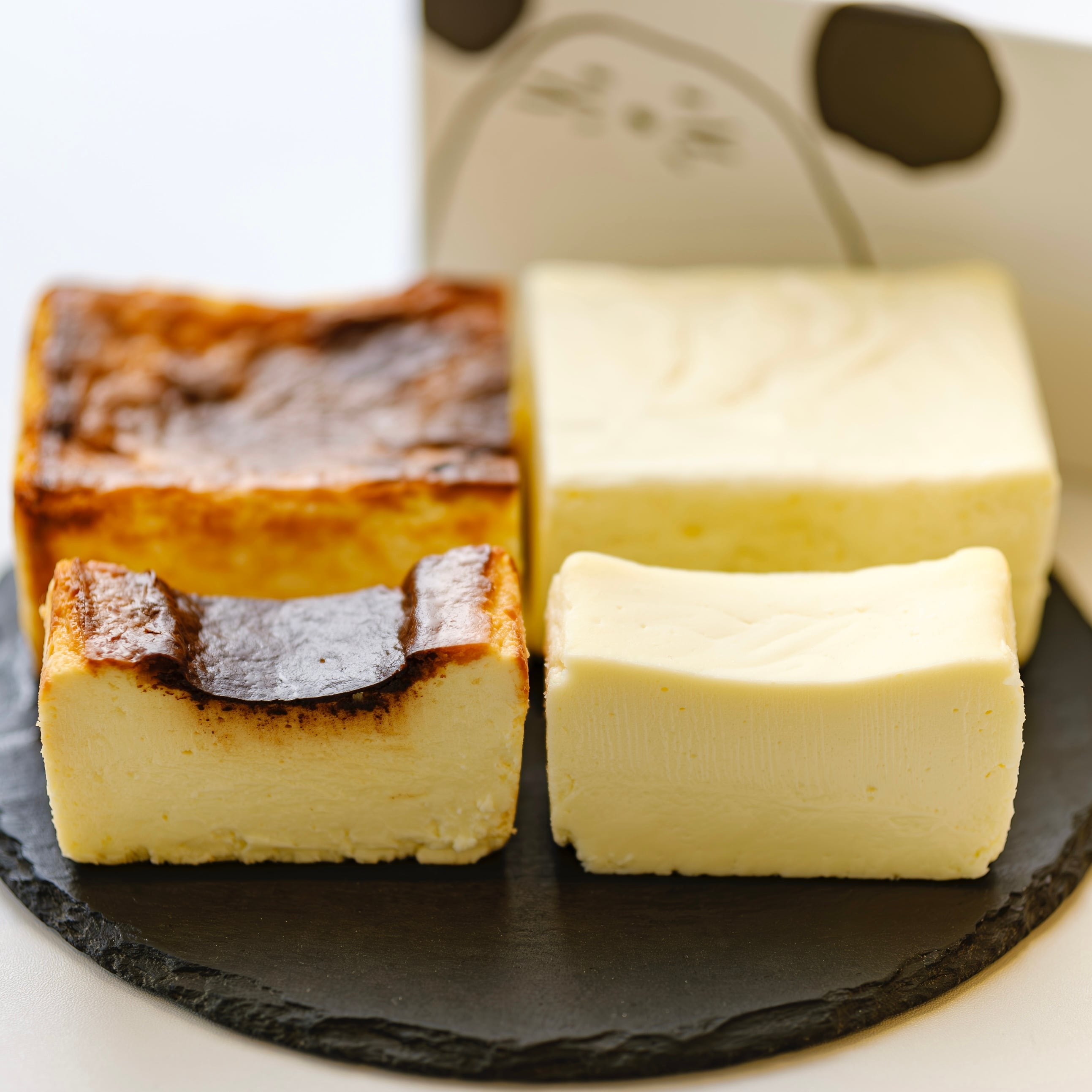 ちゅー太の濃厚チーズケーキの白と黒各1/2本ずつ入ったセットです。